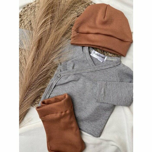 Dit stoer rib broekje in de kleur Cognac is met de hand gemaakt en te combineren met de super leuke shirtjes en mutsje van de collectie Kiekebroek !
