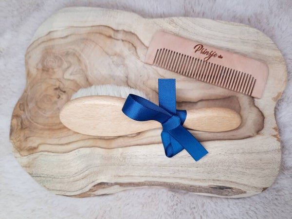 Het borsteltje is afgewerkt met een mooi roze lint of blauw lintje.