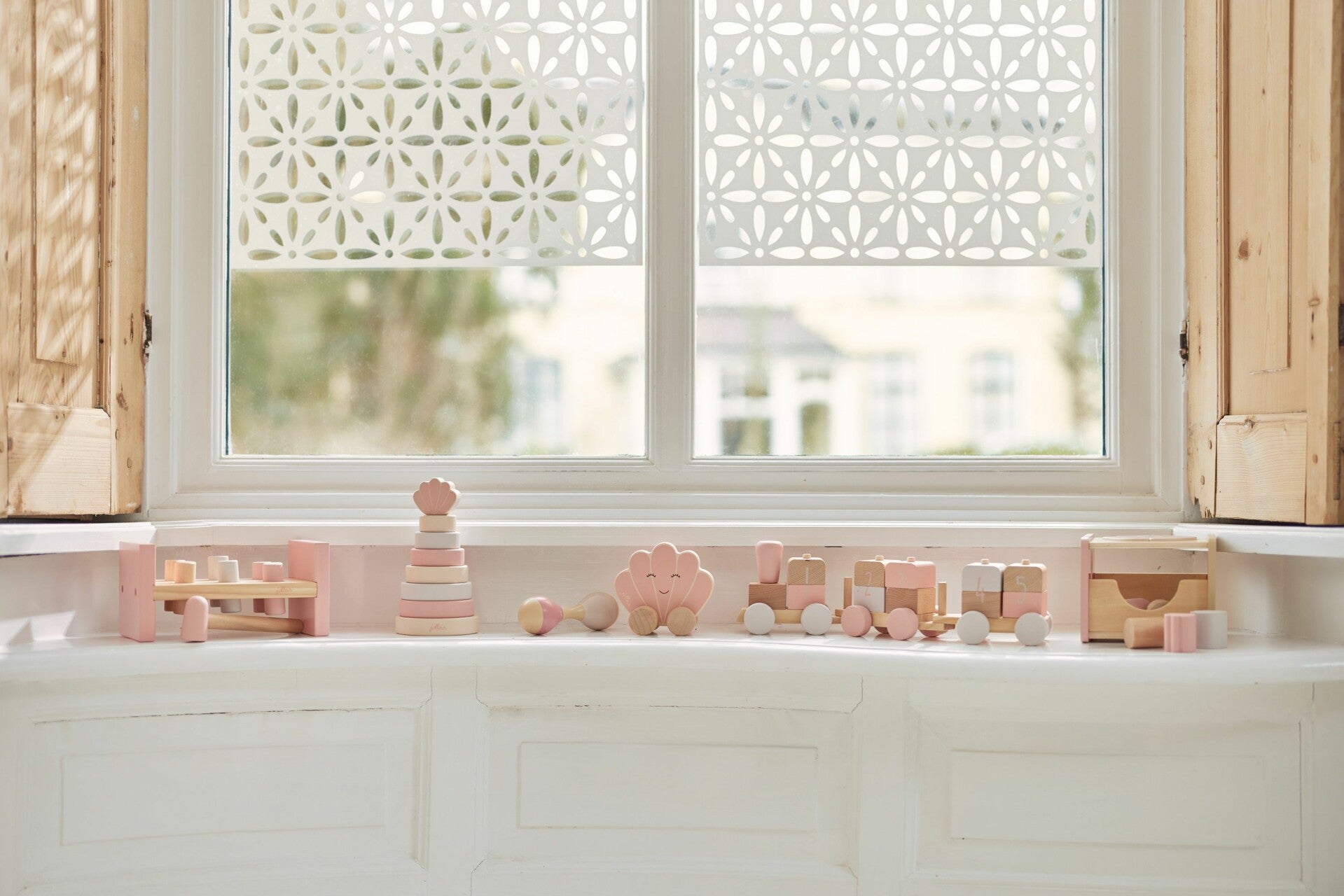 Met deze houten speelgoedtrein van Jollein heeft jouw kleintje uren speelplezier.